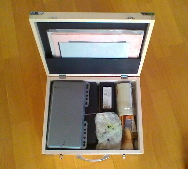 水墨画のお道具入れを作成しました。箱自体が軽いのが特徴です