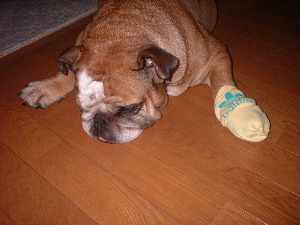 お手てを怪我したら、パパが薬塗って、子供の靴下履かせてくれます