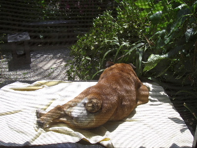 真夏でも、日光浴は欠かさずにします。華子専用のテラスで