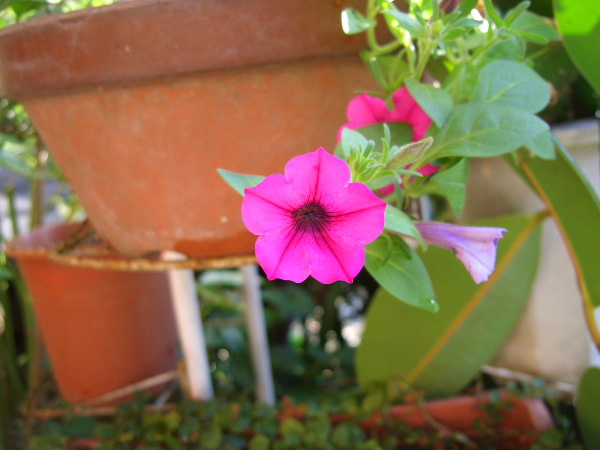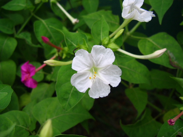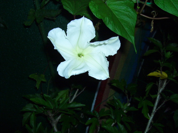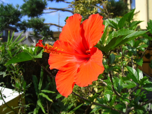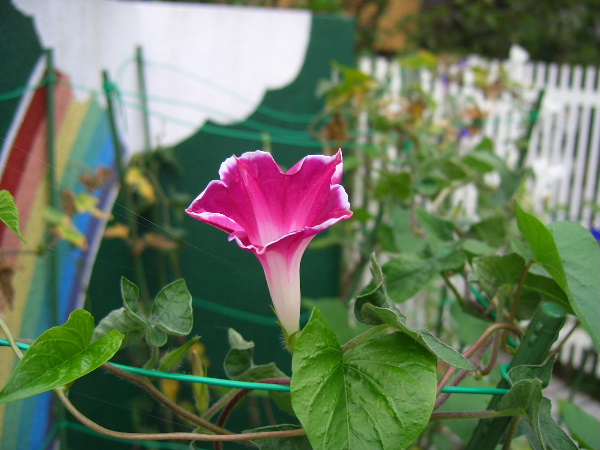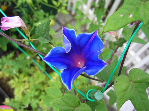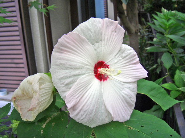 暑い日差しの中、朝夕に花を開き一生懸命に頑張って咲いてます