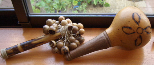 楽器名:ケーナ 直管に穴が空いてるだけのもので 不思議?の世界です すばらしい音色に 心の奥まで清らかに 洗い流してもらい 言うことなし! これ程までに 奏者の心を表現出来る楽器は珍しい それゆえ 日頃の精進と 絶間ない探究心が 要求されるものなのか |