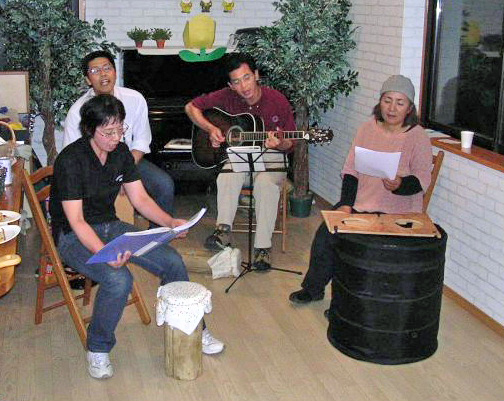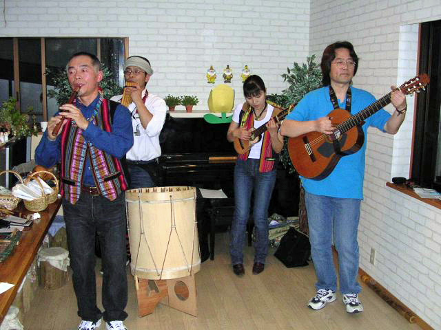 今回はミニライブと言う事で Gパン姿でした でもそれが 親近感を持てて とてもいい ライブに成りました ロスアミーゴス楽団の演奏 もう一人 メンバーがおられます 今年で結成25年と言う すごいキャリアの楽団です |