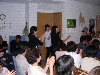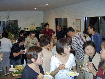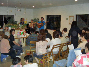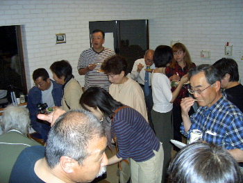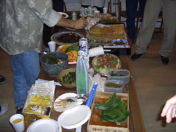 他では味わえない 途中休憩時間に 参加者が腕によりをかけた 手作りの差し入れのおやつを頂く また どれもおいしい! ライブの後は 懇親パーティ 持ち寄った食べ物 飲み物がところ 狭しと並ぶ どれも一級品ばかり これはホント 幸せ! |