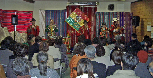 大小いろいろな「チャランゴ」を弾き分け、観客も声を出して合唱