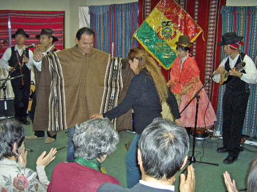 チャランゴを先頭に、客席中央通路から、ステージにあがり