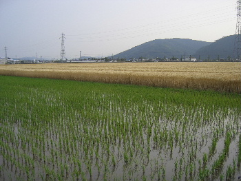 リトワーの前は、青々とした稲田と、借り入れ前の麦畑が広がる