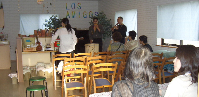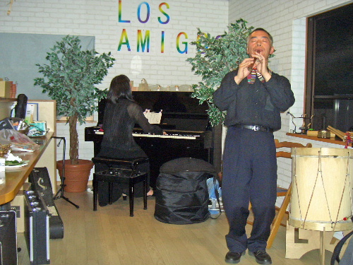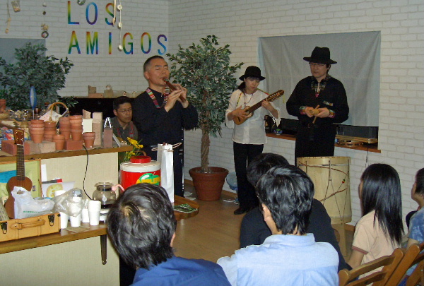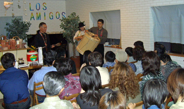 グループ活動でフォルクローレをしている お嬢さん二人