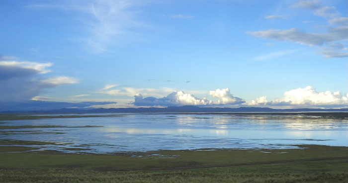 より高い所にある湖だ。琵琶湖の12倍もあり、青空を映す湖面は神秘的である。