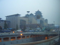 高速道路を走る、見えてきたのは、とにかく規模の大きい北京駅! .