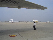 上海空港から帰路に、中国の大地を踏んでタラップに・・・・・