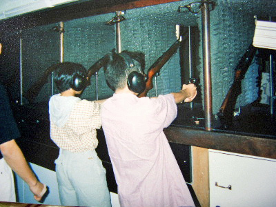 始めての ガンに興奮!ライフルも撃ちました。成績優秀!ゲーム慣れ?