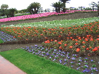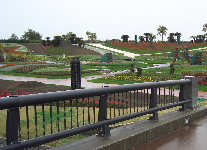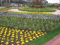 子供の国の中に お花一杯の とても広い 花壇 時期が早かったのに