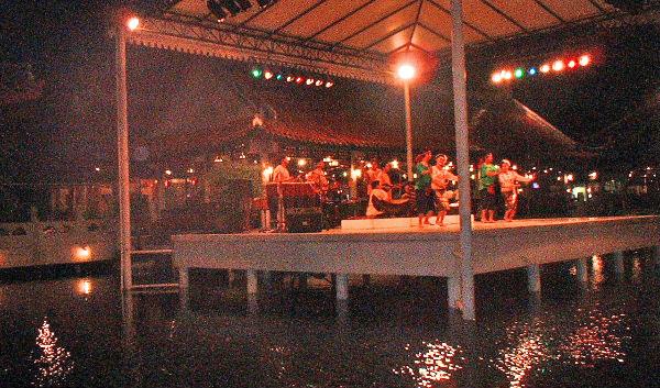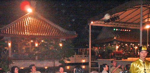 「トム・ヤン・クン」がおいしいお店にオプションで、中央舞台では楽器の演奏や