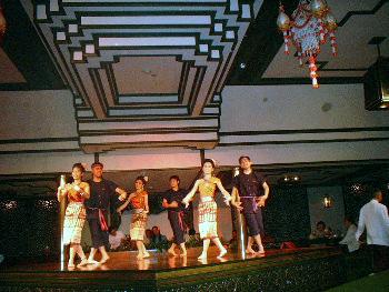 夜のディナーショウ、民族衣装をつけた踊り子が、つややかに舞い、音楽と