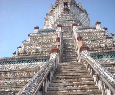 チャオプラヤー川岸にそびえるクメール風の仏塔がワット・アルン遺跡