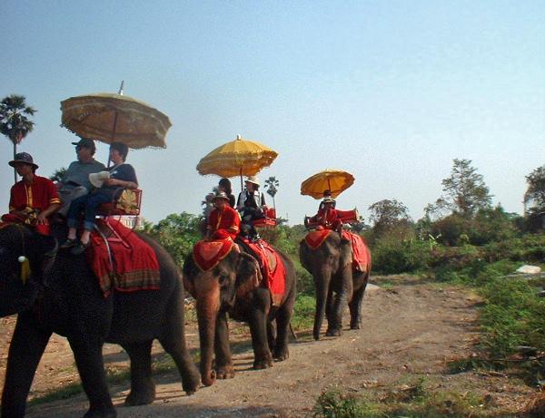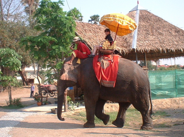 遺跡観光も終え一休み。像に乗ってジャングルを散歩できる