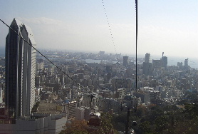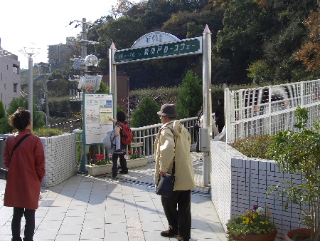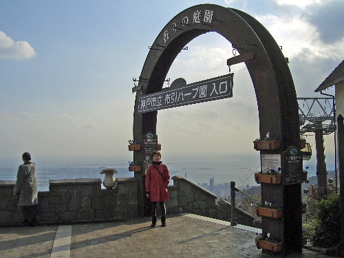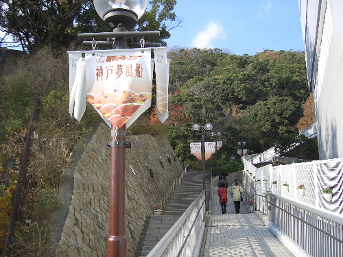 に入ったが、満員でどの店も順番待ちの列が出来ており、さすが 神戸!街中、どこも人出の多さは大都市である。昼食後地下鉄で 新神戸駅に移動、5分ほど歩いて、「新神戸ロープウエー」の北野 1丁目駅に着いた。「神戸夢風船」のゲートより、丘の上の駅へ |
