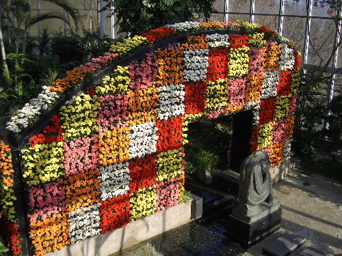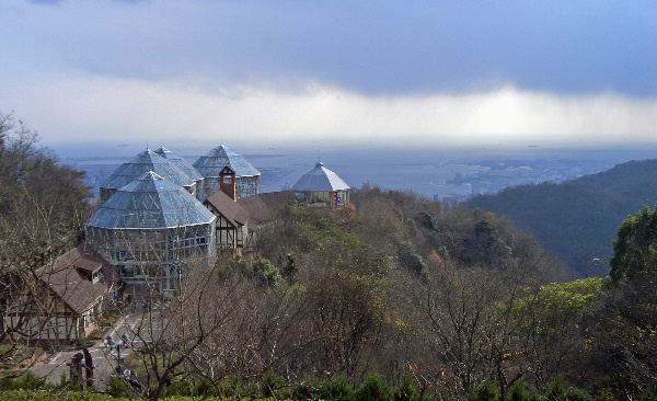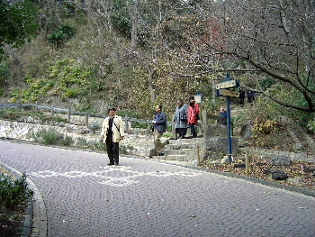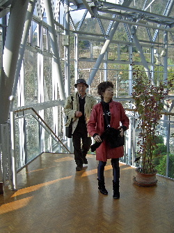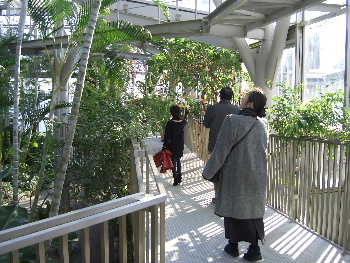 を見た後、温室や草花・香りの芝生などを見ながら、ロープウエーの中 程にある「風の丘」駅まで坂道や階段を下り、ゆっくりと楽しむコースだ |