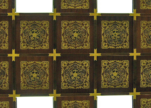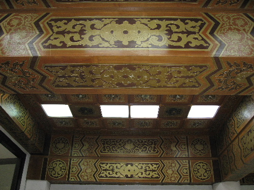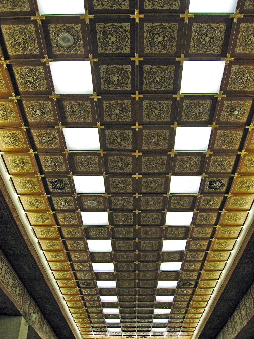 入り口を入ったフロアーの天井は、見事な技の彫刻で飾られている