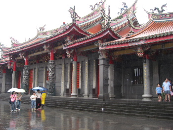 次に訪れたのは「行天宮」。屋根の上に飾り物のあるのは「道教」のお寺で