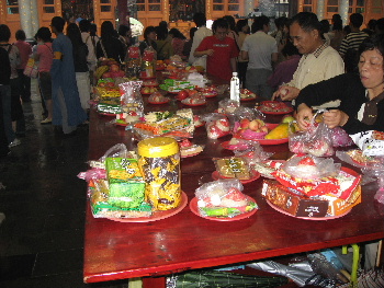 いくつものテーブルの上には、お供えものが一杯置かれている