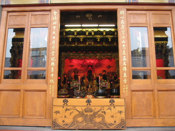 道教独特の「赤」と「金」で装飾された関羽の像が安置されている