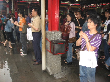 中に入れば、そこは線香の煙と人々の熱気で蒸し返っている