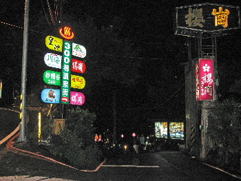 日本なら300円位の距離を走ったか、温泉街の電飾があるところに着いた