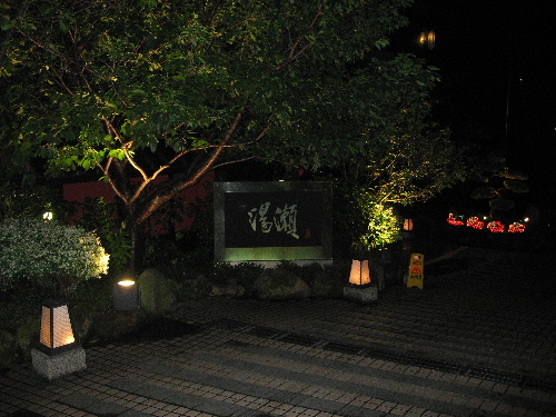 もうすっかり、暗くなって照明がついている。入る温泉は「湯瀬」と言う