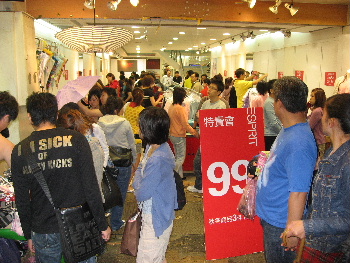 小間物や衣服のお店、服のお店の前には、100均ならぬ「99均」の看板も(約400円)