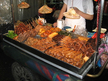 食べ物やの屋台、見た目脂っこく見えるが、そうではない。サッパリとヘルシーで