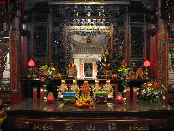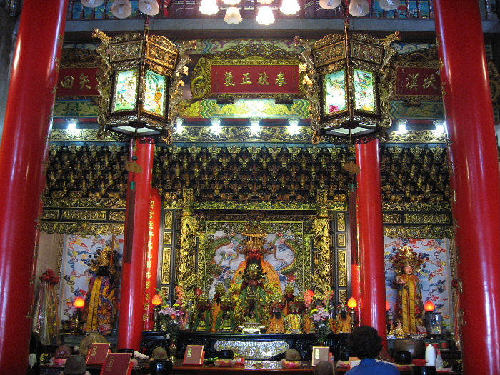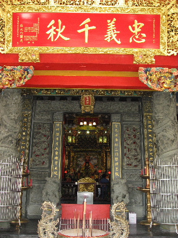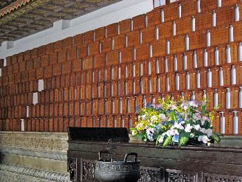 廟の中の祭壇はスッキリとしていて、回廊には将兵の位牌?が並ぶ