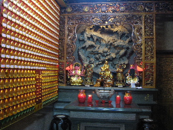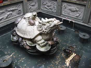 先ほどの前室の中央には、亀の彫刻が水槽の中にいて、寶銭をくわえて