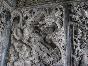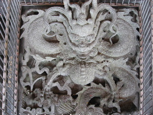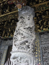 建物を飾る石彫の数々、龍の足の爪は4本。天子は5本でお寺は4本