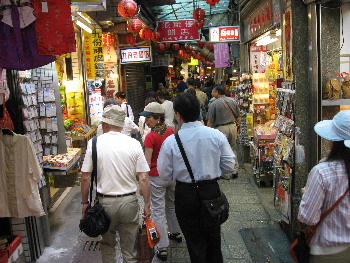 ここに来られるとか。お店が連なって狭い道、これでは車は無理だ