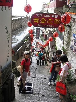 峠付近で車を降りて、後は徒歩で九分の街中に下るという、と言うのは