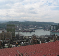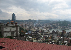 お寺から基隆港を見渡す、台湾4大国際港の一つ、北の玄関口として繁栄