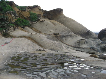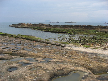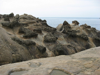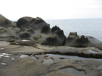国道2号線を東に進み、野柳風景特別区に着いた。海に突き出た