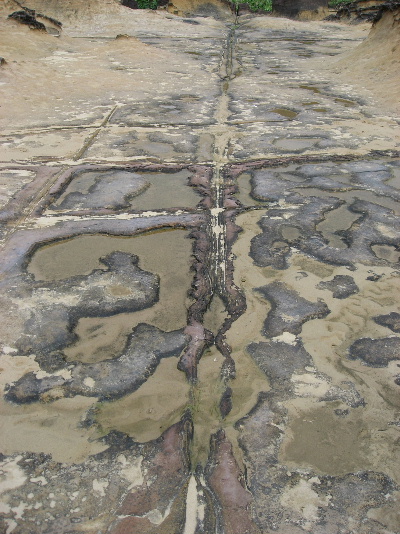 縦横に地面に入った裂け目(節理?)ここに海水が侵食し、造形をする