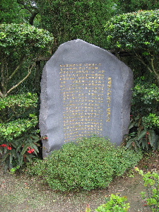広場の山裾の元に石碑があると言う。入り口には「ケ麗君記念公園」とある