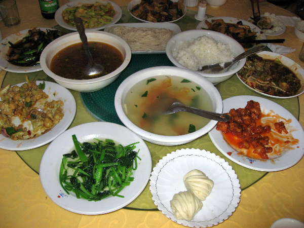 市内にある「食為天大酒店」で「敦煌料理」の昼食、ここも歩道が広く