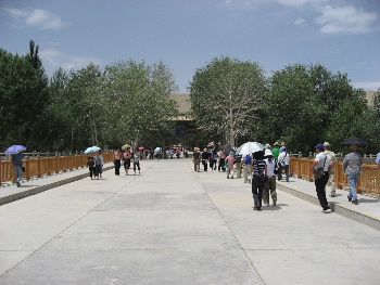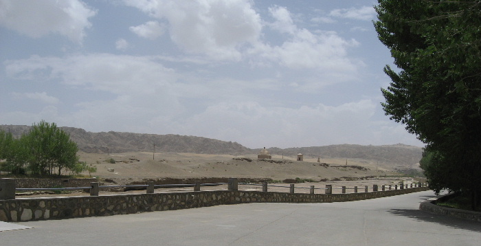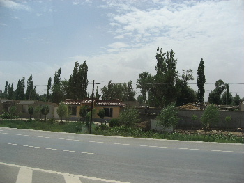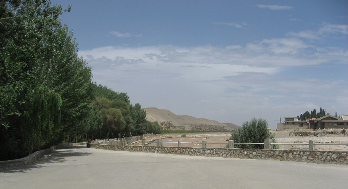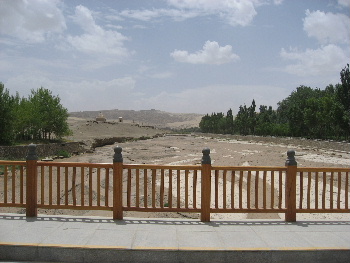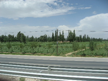 お腹が膨れたら、いよいよ莫高窟観光だ、市中を過ぎると道路の両側は