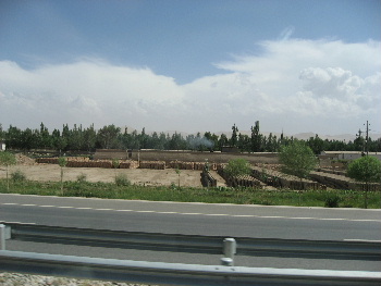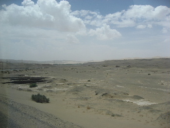 両側は、雨が年間30mmしか降らないため、乾燥に強い植物、綿・葡萄・