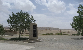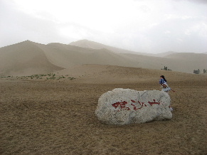 門を入ると、正面に「鳴沙山」と彫られた大きな石が横たわり、180度砂山!