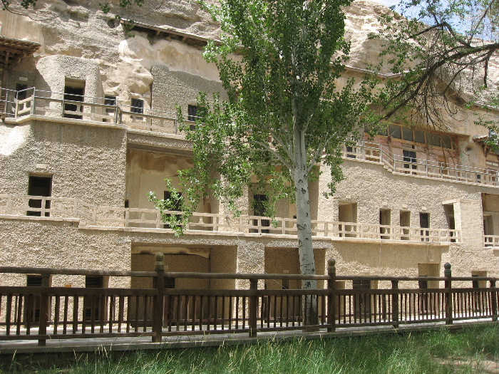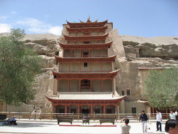九層楼の建物は、96窟で弥勒大仏様がおられる。高さは34.5mで