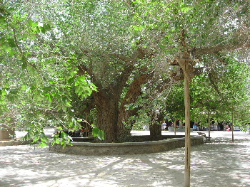 文革で壊されたが、再建されたもの。木が枝葉を丸くして斜めに生えてる