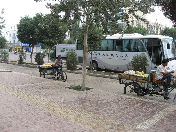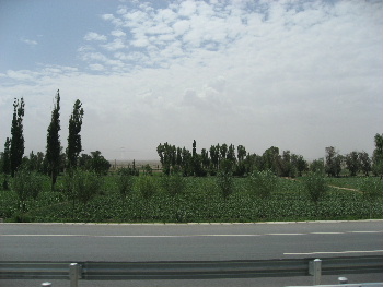 莫高窟を後にして、昼食をとりに街に戻る。オアシスを離れると