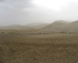 砂の地平線が遥か彼方にのびる、ゴビ砂漠に来たと実感した。 .