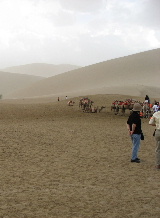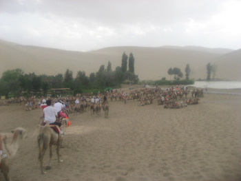 て、後は徒歩で月牙泉に向かう、多くの駱駝が帰り客を待っている。それから降