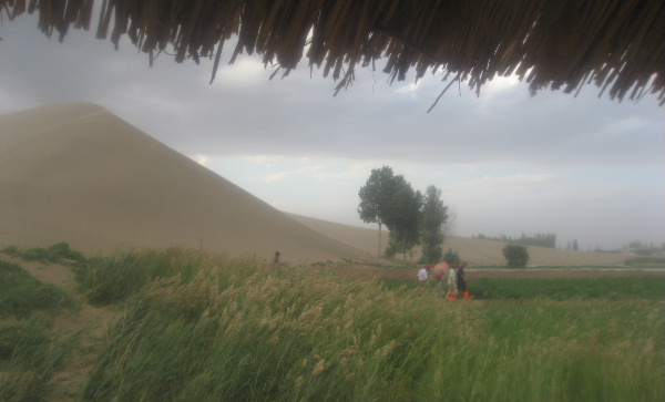 をロスしているので見学だけ。砂嵐がすごいので、茅葺の日よけ休憩所?